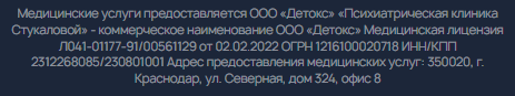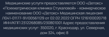 Платная служба срочной наркологической помощи клиники доктора Стукаловой работает по официальной лицензии от Минздрава и на автомобилях собственного автопарка.